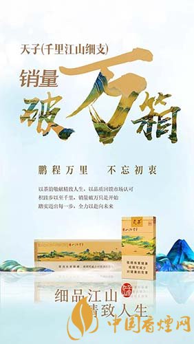 以上便是由香煙網小編為大家介紹的關于速報!2018天子(千里江山細支)銷量破萬箱的相關信息,想要了解更多有關內容請點擊:天子千里江山細支 30元的價格做到內外兼修