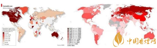 大麻:全球吸食大麻的人數大約在1.412億。一般以年輕人為主。