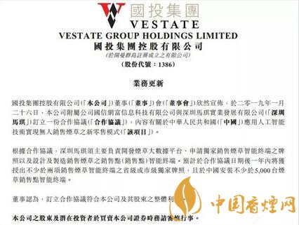 根據合作協議,深圳馬琪須主要負責開發煙草大數據平臺、申請獨家銷售煙草智能終端牌照以及設計及制造銷售煙草的銷售點(銷售點)智能終端。
