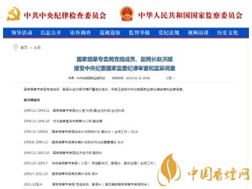 目前,國家煙草專賣局網站上關于趙洪順的相關新聞報道及重要講話已被刪除。