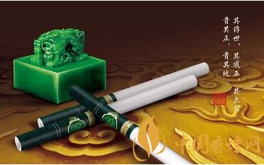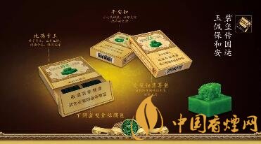 取“玉溪(雙中支翡翠)”煙盒靜觀,其龍紋環繞,王者其色,注定生而不凡,尊貴無上。煙盒正面圖案是清乾隆御寶交龍鈕翡翠玉璽,正上方的“翡翠”兩個字用翡翠色渲染,質感十足,一脈相承。煙盒正面中間,印有“比德于玉”四字,傳遞著“君子高義,玉有五德,比德于玉,溫潤而澤”的文化理念。