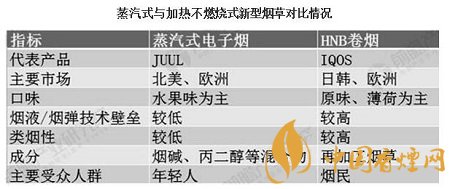 新型煙草按照出煙方式不同可分為加熱不燃燒式卷煙和蒸汽式電子煙。蒸汽式電子煙是通過電加熱煙油,經過霧化器來產生煙霧達到吸食煙堿目的。而加熱不燃燒卷煙(HNB)是在不燃燒煙草的前提下,讓煙草發出烤煙的香味,由于沒有燃燒煙草,加熱煙煙草能釋放含尼古丁和其他化學物質,但使用加熱煙時產生的氣霧比傳統香煙燃燒后產生的煙霧少了90-95%有害物質,同時又不產生煙霧或煙灰。