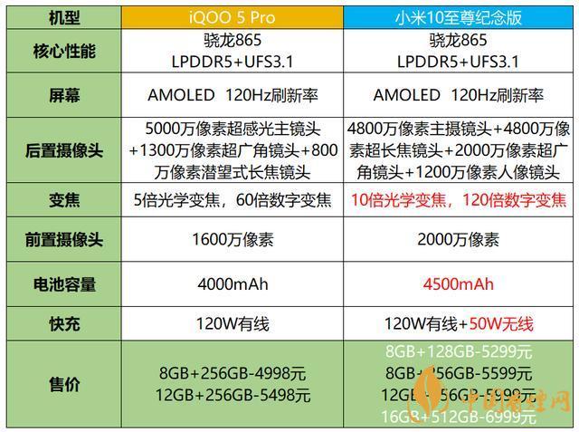以上就是香煙網為您提供的關于iQOO5Pro和小米10至尊紀念版參數配置對比的信息,想要了解更多的手機資訊,請來關注香煙網!
