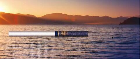 取出一支煙來仔細觀賞,卻不似包裝那般低調。湛藍色的煙嘴搭配鎏金波水浪紋,看起來華貴又不失穩健,原來在低調的包裝之下還有這般威嚴所在。這種創意靈感來自云南的著名景觀撫仙湖。每到夕陽西下,金黃色的陽光灑滿湛藍色的湖面,波光粼粼之下魚龍跳躍,無限風光盡在此湖。