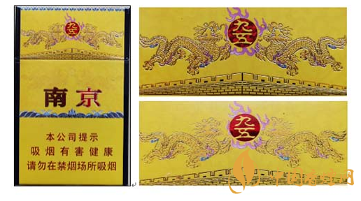假冒卷煙:該款假冒卷煙南京字體邊緣金色輪廓線和筆畫內無小圓點,字體筆畫顏色暗淡,燙金套印有偏差。圖3上真下假