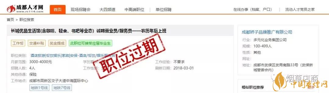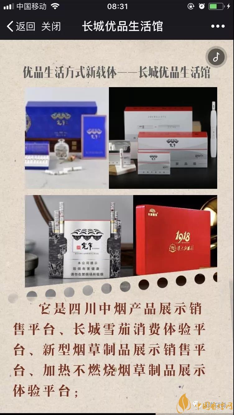 前面為大家介紹了,四川中煙第一次新零售發聲 創新高質量發展全力謀變(優品生活體驗店)。朋友圈里確實有長城優品生活館的H5宣傳介紹,而且也確實聲稱自己是“全國首家煙草集合店”。在介紹里面也有它是“煙草、咖啡、輕食、書籍與文創產品”五大生活元素的完美融合者。它是四川中煙產品展示銷售平臺。據說本月成都長城優品生活館開啟。此外,小編也在成都人才網看到了已經過期的“長城優品生活館(含咖啡、輕食、書吧等業態)誠聘營業員/服務員——農歷年后上班”的招聘啟事,通過職位描述可以感受店內的大概服務