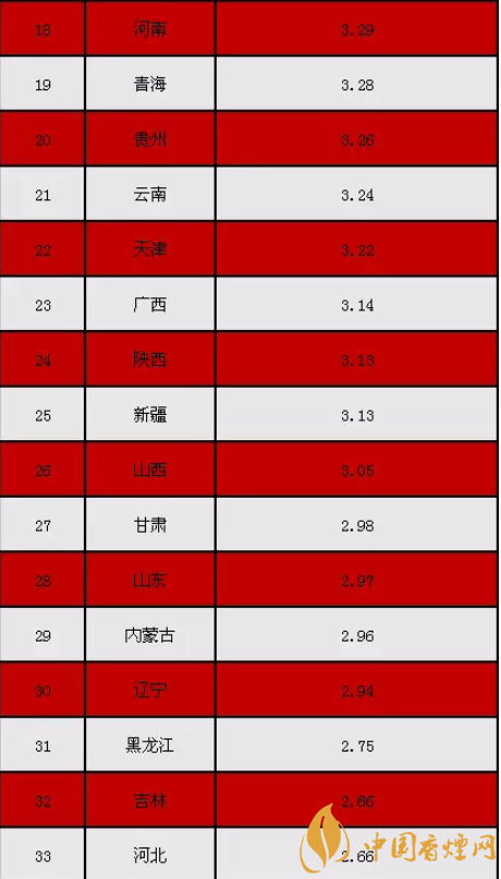 有一點搞不懂,為啥經濟中心的上海卷煙消費比西藏還要低那么一點點。是控煙手段影響了卷煙消費水平的提升了嗎?還是處于其他原因?誕生了中華的地方,卷煙消費應當不僅僅止步于此啊。