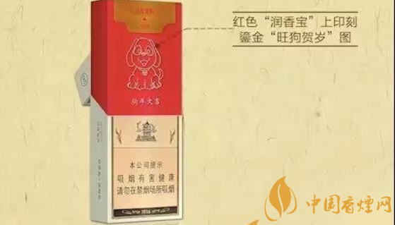 以前只見過紅珠黃珠的,雙爆珠還是第一次見啊,黃鶴樓(1916)的狗年生肖賀歲版條包煙盒上有“狗年大吉”字樣,用紫光燈照射即可發現:煙盒里面是可以單獨取出的“潤香寶”保濕煙盒,內置保濕盒整體為紅色,正面印有一幅鎏金“旺狗賀歲”圖像,圖像正下方印有“狗年大吉”四字。