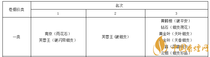 一類價位細支煙綜合質量排名如下: