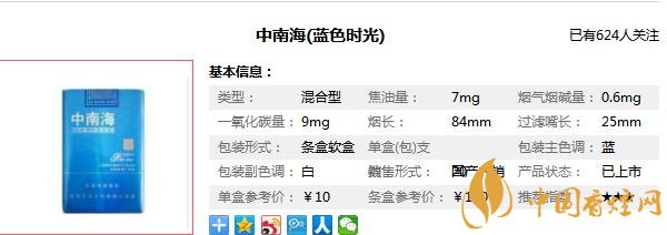 中南海藍(lán)色時(shí)光多少錢一包 中南海藍(lán)色時(shí)光香煙價(jià)格圖片