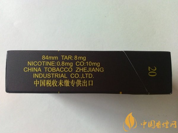 煙長(zhǎng):84mm 過(guò)濾嘴長(zhǎng):34mm 包裝形式:條盒硬盒 單盒(包)支數(shù):20