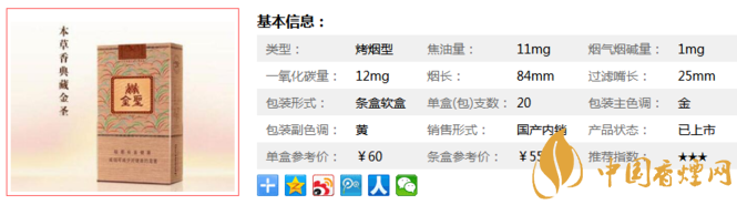 為進(jìn)一步強(qiáng)化“金圣”的品牌特征,江西中煙將他們自主研發(fā)的第三代“金圣香”(中草藥添加劑)運用于“金圣”(典藏·本草香)的配方中,煙氣更加飽滿協(xié)調(diào)、更具層次感。下面我們一起來看看它的參數(shù)信息:焦油量11mg,煙堿量1mg,一氧化碳量12mg.