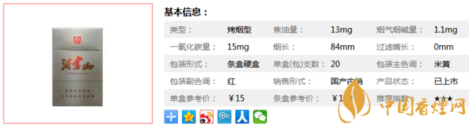 將軍功勛沂蒙山這款香煙,售價不高,但是比較少見,一般很難買到,煙氣較沖,吸到后端香味不夠明顯。經香煙網小編市場調查將軍功勛沂蒙山售價為15元/包。