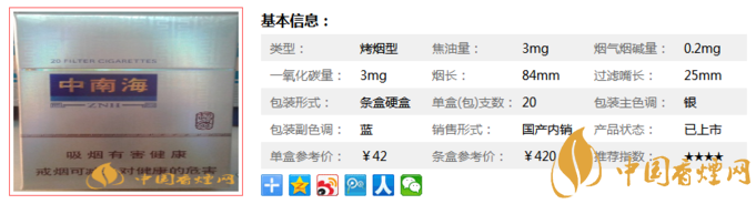 三、中南海超然香煙參數