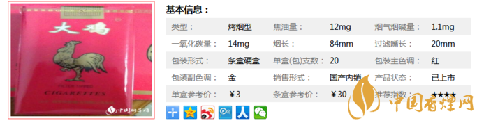 大雞香煙價格表圖 大雞富貴香煙口感及參數(shù)