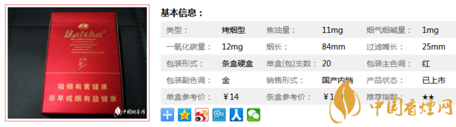 三、白沙尚品紅香煙參數