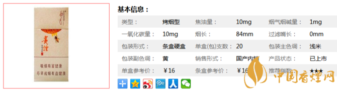 類型 :烤煙型 焦油量 :10mg 煙氣煙堿量 :1mg 一氧化碳量 :10mg
