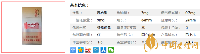 三、金橋硬香煙參數