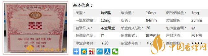 輔材設計上,選用各種新型卷煙材料,在確保卷煙品質風格的前提下達到了降焦減害的目的。采用了高品質、低焦油、低危害的再造煙葉有機地融合到葉組配方中,發揮了再造煙葉降焦減害和特色增香的特殊功效。下面我們一起來看雙喜百年經典的參數信息:焦油量:10mg. 煙堿量:1mg. 一氧化碳量:12mg.