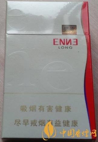 白色浮雕紋理背景搭配紅色的“ENNE”與波浪條紋,簡約時尚同時帶來強烈的視覺沖擊效果。“e”與“n”四字母用獨特的凸版立體呈現,質感十足,時尚優雅。包裝顯得很有質感。此煙明顯的特點就是煙支的長度為90mm,在目前的粗支香煙中顯得修長與別致。