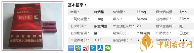 三、威斯經典香煙參數