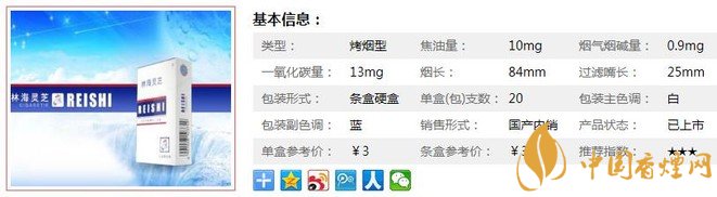 林海靈芝硬白煙支長84mm,過濾嘴長25mm,精選國內的優質白肋煙和優質烤煙,輔以高檔進口白肋煙和香料煙,采用二次加料處理、單獨對白肋煙加表料等獨特的工藝加工技術,配合的加香加料,精制而成。下面我們一起來看林海靈芝硬白的參數信息:焦油量:10mg. 煙堿量:0.9mg. 一氧化碳量:13mg.
