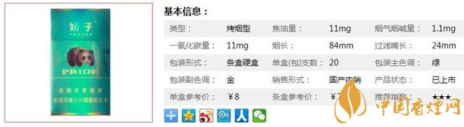 | 類型 :烤煙型 | 焦油量 :11mg | 煙氣煙堿量 :1.1mg | 一氧化碳量 :11mg |