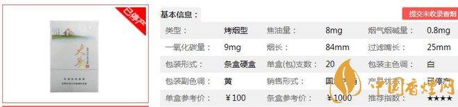 | 類型 :烤煙型 | 焦油量 :8mg | 煙氣煙堿量 :0.8mg | 一氧化碳量 :9mg |