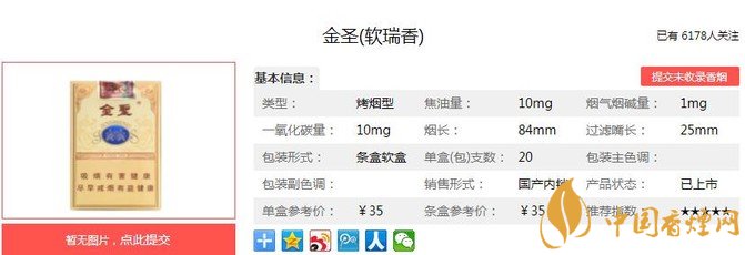 一、金圣軟瑞香香煙價格