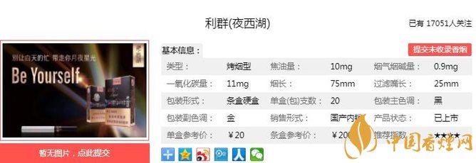 以上便是由香煙網小編為大家介紹的關于2018年利群上市新品 利群夜西湖售價20元一包的相關信息,想要了解更多有關內容請點擊:一品梅特長口感醇和飽滿濃馥悠長 價格15元一包