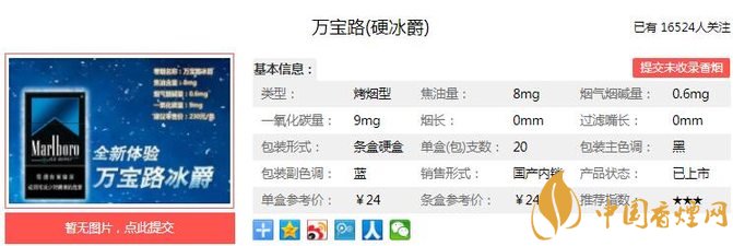 萬寶路(硬冰爵)作為萬寶路薄荷系列的經典之作, 使用進口優質煙葉。采用創新ICEBALLTM科技,將薄荷珠子內嵌于濾嘴,使一次吸煙體會帶來雙重冰感薄荷體驗。它的零售參考價為24元/包。