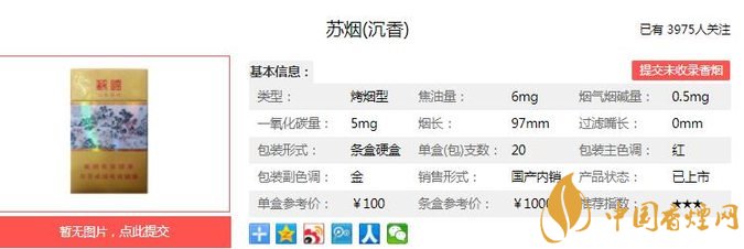 一、蘇煙沉香香煙價格