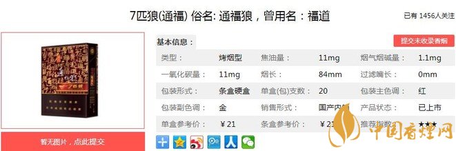 三、七匹狼通福香煙參數