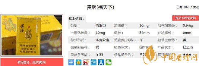 三、貴煙福天下香煙參數