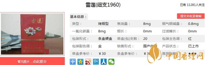 以上便是由香煙網小編為大家介紹的關于雪蓮細支1960多少錢一包 雪蓮細支1960口感及參數介紹的相關信息,想要了解更多有關內容請點擊:鉆石一品荷花好抽嗎 鉆石一品荷花獨家口感測評