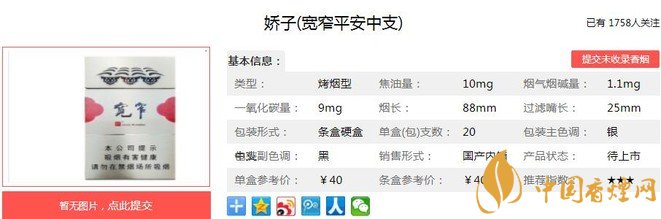 嬌子寬窄平安中支多少錢一包 寬窄系列的經典傳承