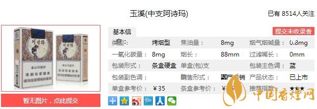 一、玉溪中支阿詩瑪香煙價格