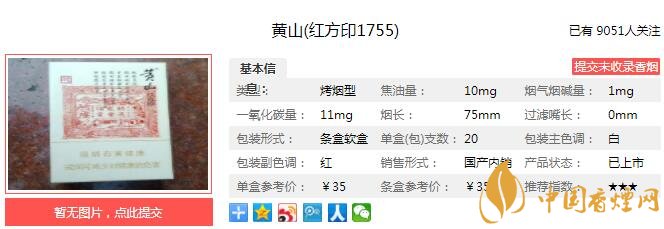 以上便是由香煙網小編為大家介紹的關于黃山紅方印1755價格及參數介紹 黃山紅方印1755口感分析的相關信息,想要了解更多有關內容請點擊:黃山六尺巷香煙多少錢一包 黃山六尺巷口感及參數介紹