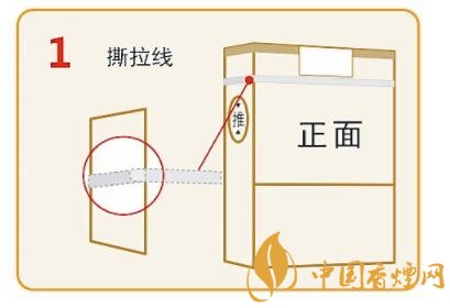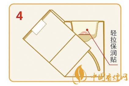 翻轉到煙包背面,向上撕開下方易撕貼,輕松撕開下部透明紙。