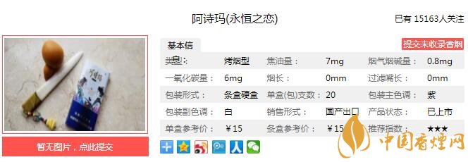 阿詩瑪永恒之戀此款超細支清新淡雅的外觀設計是其引人眼球的亮點。超細支煙的風味調配均衡、自然,清、甜、香風味特點突出。柔順細膩中層次感豐富,細支煙里不錯的煙款,值得入手賞玩一番。經香煙網小編市場調查阿詩瑪永恒之戀售價為15元/包。