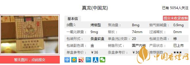 一、真龍中國龍香煙價格