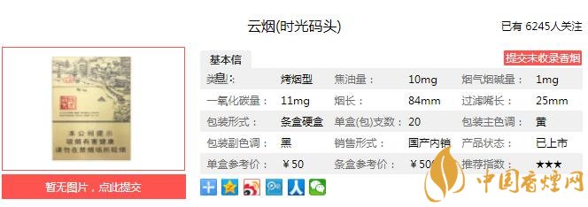 時光碼頭的整體品性,因為其濃郁勁烈的煙氣,醇厚清香的味道而顯上乘。它修正了目前一些云煙系列存在的清淡而稀薄的煙氣弊病,變得剛毅而粗獷。醇香厚重般的味道中,依然難掩云煙清甜香品性的曲線之美。清潔干凈的煙氣,揉以微甜亦甘的味道,帶來的是潤雅格致的品味。經香煙網小編市場調查云煙時光碼頭售價為50元/包。