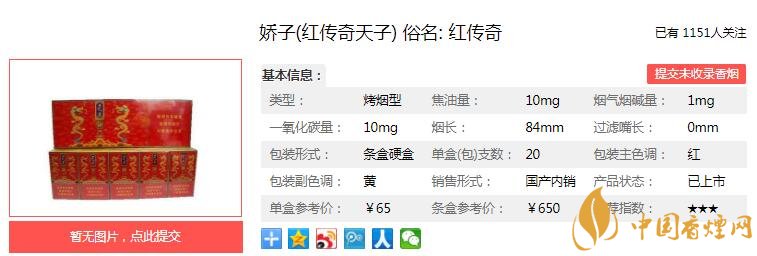 三、嬌子紅傳奇天子香煙參數
