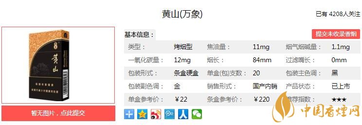 三、黃山萬象香煙參數