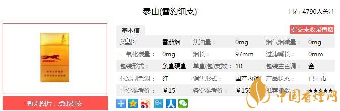 以上便是由香煙網小編為大家介紹的關于泰山雪豹細支多少錢一盒 泰山雪豹細支口感分析的相關信息,想要了解更多有關內容請點擊:七匹狼通仙多少錢一包 開創“生態綿柔香”全新品類