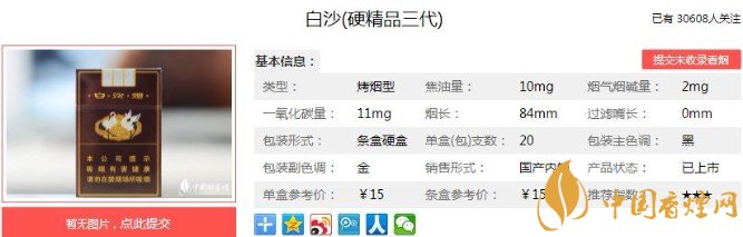 以上便是香煙網小編為大家介紹的關于兩次改良終成精品,白沙硬精品三代價格15元一包!的相關信息,看完之后大家是不是對于白沙(硬精品三代)的相關信息更加了解呢。大家還想查詢更多的相關內容歡迎點擊:白沙軟和天下口感評鑒,百元價格級別的良心煙品