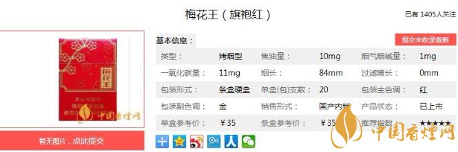 以上便是香煙網小編為大家介紹的關于梅花王旗袍紅多少錢一包 梅花王旗袍紅價格及口感分析的相關信息,看完之后大家是不是對于梅花王(旗袍紅)這款香煙的相關信息更加了解呢。大家還想查詢更多的相關內容歡迎點擊:梅花王硬紅多少錢一包 梅花王硬紅參數及口感(內附圖片)