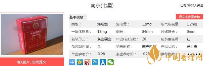 包裝上,南京(七星)和之前先上市的南京(紫樹)幾乎如出一轍的外觀設(shè)計,談不上所謂的精心設(shè)計或者新穎獨(dú)特。只把漢字“南京”和其拼音以及金陵的logo嵌入,僅此而已。在煙支的設(shè)計上面,比較像是紅杉樹(森)的設(shè)計,并不像是南京煙的一貫風(fēng)格。
