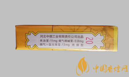 | 類型 :烤煙型 | 焦油量 :11mg | 煙氣煙堿量 :0.8mg | 一氧化碳量 :13mg |
