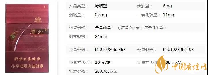 蘭州卷煙始是西北地區卷煙的的代表品牌,蘭州以飛天形象和敦煌為代表的傳統文化為理念,極富特色。這款香煙的零售價格為30元/包。